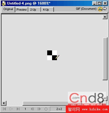 選用鉛筆工具,取消抗鋸齒功能(Anti-Aliased),在畫面對角點兩個黑點。