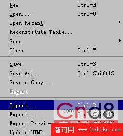 在打開的Import對話框中選擇我們在Fireworks MX制作下拉菜單一文中輸出的已經進行了切割處理的Htm文件(如圖3)。