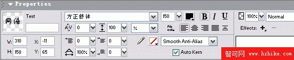 用鼠標在畫布上單擊後,輸入文字“網絡”。在工作區域下方的PropertIEs面板上選擇填充色為黑色,字體為舒體,文字大小為150(如圖2)。