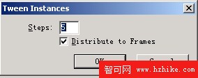 同時選中兩個symbol,點擊右鍵,在symbol項選擇tween instances,或者按ctrl+shift+alt+t,彈出對話框,添入數值5。如圖: