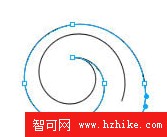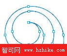 第五步:用鋼筆工具把兩個螺旋的外接口連接一起即形成一個封閉的螺旋路徑,然後根據需要調整大小粗細及顏色。