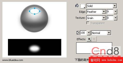 大家注意到 feather的使用,往往會有超出小球的或者其固有形狀的時候,這時候,合理的運用Mask就很重要了,在 Fireworks裡,我們可以簡單理解為,粘貼到物體內。