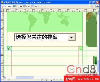 2、選擇Fireworks CS3中的【切片】工具,對效果圖進行切片,切片完成後的效果如圖1-24所示。