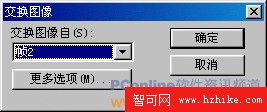 松開鼠標後會立即彈出一個“交換圖像”的設置窗口,在下拉菜單上選擇與“手機”按鈕切片進行交換的圖像所在的幀。在這裡我們選擇“幀2”。如圖05。