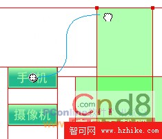 點選“手機”按鈕的切片,然後用鼠標左鍵按住該切片中間的圓形控制圖示不放,拖拽鼠標到與其進行圖像交換的切片上,這時在這兩個切片之間會出現一條藍色的鏈接曲線,如圖04。