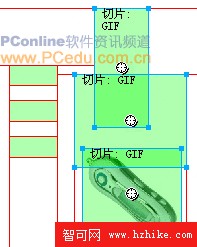 把這三個按鈕全部選中,並在任意一個按鈕上點擊鼠標右鍵,然後從彈出菜單中選擇“插入切片”項。這時會彈出一個提示窗口,可直接點擊“多重”按鈕。這樣,就為這三個按鈕建立了導出切片。如圖01。