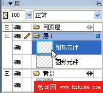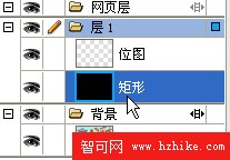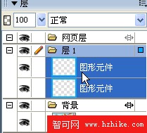 這樣得到兩個圖形元件,選中其中一個,用鍵盤上的上下左右鍵將圖片向下向左或者向下向右移動幾個象素,選中兩個元件
