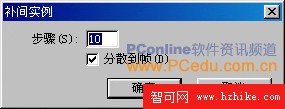 在“步驟”欄中可輸入這兩個分身之間過渡的圖像步驟,在這裡我們可以理解為該動畫設置幀數。而“分散到幀”復選框則是將這兩個分身之間的過渡圖像按順序分發到每個幀之中。因此只有選中了該項,整個動畫才能完成。在點擊“確定”按鈕後即可生成動畫效果了。
