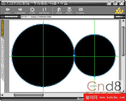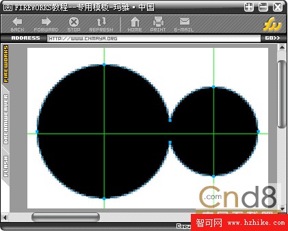 2.注意剛剛大小兩個圓形的相交處剛剛是匯合了一點點,然後選中兩個圓形,選擇菜單--修改--組合路徑--聯合,這樣兩個圓形就形成了一個路徑。