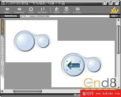 復制剛才的圓形按鈕和箭頭,做水平翻轉,並縮小,如有的效果會翻轉,根據情況修改投影的角度即可。