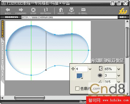選擇自定義形狀中的箭頭形狀,在圓形按鈕上畫一個箭頭,如果方向不對選擇水平翻轉,加效果內側陰影,設置為距離3-透明度65%-柔化2-角度315-顏色#000000,再增加效果投影,設置為距離2-透明度100%-柔化1-角度135-顏色#FFFFFF;