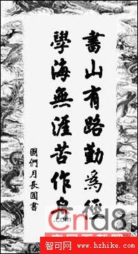 6. 為了更好地突出書法效果,使它們更像一幅完整的作品,我們還要對其裝裱一下。單擊菜單欄中的“文件→導入”命令,導入一幅背景圖,並將其至於後面,然後調整好文字對象與背景的位置關系,這樣整個作品就設計完成了,效果如圖6所示。