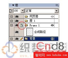 3、到圖層面板裡,選中這個圖片框,取消鎖:如圖示: