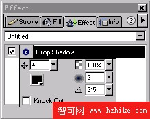 4、按下Ctrl+A全選場景中圖像,然後打開Effect(效果)面板,在效果列表中選擇Shadow and Glow(陰影與發光)選項中的Shadow(外陰影)命令對兩個圖像同時進行陰影設置。設置見圖3