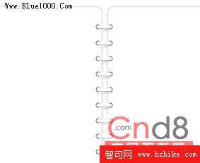 經常會看到有些頁面中公告板上方有類似掛繩的效果,做了一個。其實很簡單,幾個路徑的組合而已,修改一下也可以制作活頁記事本中間的鐵環效果: