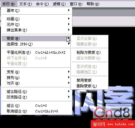 4.同時選中文字和圖片,使用菜單命令中的“修改”/“蒙版”/“組合為蒙版”命令。