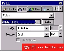 選定繪制的矩形,打開Fill(填充)面板,將填充方式變為Folds,具體的填充方案為“White,Black”,其余選項保持默認值不作修改,具體設定如圖01所示: