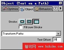 (1)在影格2,選中畫布中的文字路徑,然後選擇Object(對象)面板,在Text Offset(文字偏移)中填入數值,例如30。