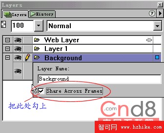8、現在我們要開始制作四個虛線運動的動畫,它們分別是從左向右運動,從上向下運動,從右向左運動,從下向上運動。從而形成一個圍繞黑色邊框運動的效果。先做一個虛線從左向右的動畫符號,Insert>New symbol在彈出的對話框中,我們在Name中,命名為1,把Animation前面的框勾選上,隨後彈出一個動畫符號編輯區,打開Library面板,我們剛才定義的虛線符號就在裡面,按住鼠標左鍵不放,把這個符號拖到動畫符號編輯區,選中編輯區的虛線符號,Edit>clone克隆一個,選中克隆出的虛線,按8下電腦鍵盤上的右方向鍵,把克隆出的虛線向右移動8個象素。同時選中這兩個虛線段,Modify>Symbol>Tween Instances在彈出的對話框中如圖設置。這樣一個從左向右運動的動畫符號就做好了,好,把編輯區關閉。