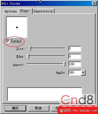 6、再點開shape面板,把square前面的框勾選上,如果不勾選它,默認的虛線由圓點組成。
