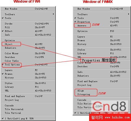最大一個變化就是FWMX將在FW4中存在的Tool Options(工具選項)以及 Object(對象)兩個浮動面板全部整合到了PropertIEs(屬性面板)中了,這個變化是否是一個對操作過程的簡化或者說優化,我們可以通過隨後的文章得到答案,請大家關注。