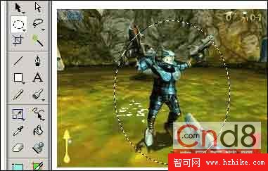 二、在工具欄中選擇橢圓形選擇工具或是矩形選擇工具,在位圖需要羽化的部位進行選擇。