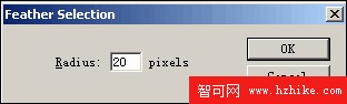 四、在feather selection對話框中設置羽化的半徑,這裡我選了20個象素,點擊OK