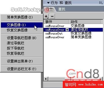 為 “切片”或“熱點”所添加的全部指令都保存在“行為”面板中。同時,點擊“行為”面板上的“添加” 或“刪除” 按鈕也可以為切片、熱點添加或刪除相關的行為指令,如圖10—10。