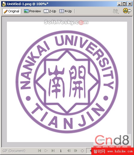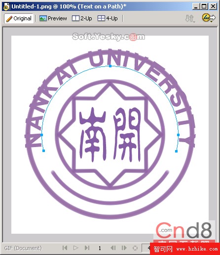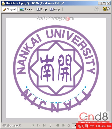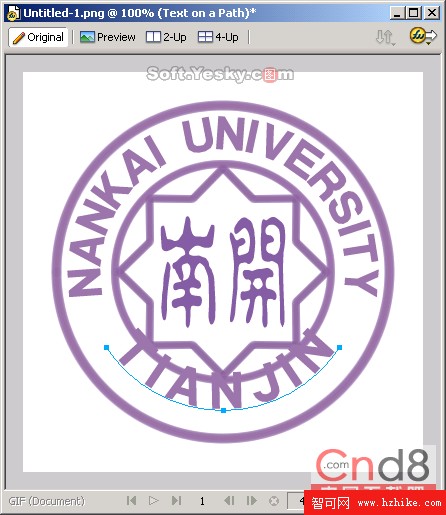 (19)然後使用同樣的方法,調整文本的上下位置,適當地在校徽上添加兩個修飾的圓形圖案,最終我們就得到圖19所示的校徽圖了。是不是很簡單啊? .png文件下載