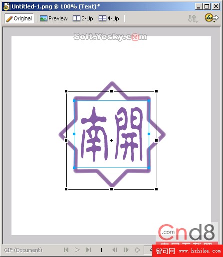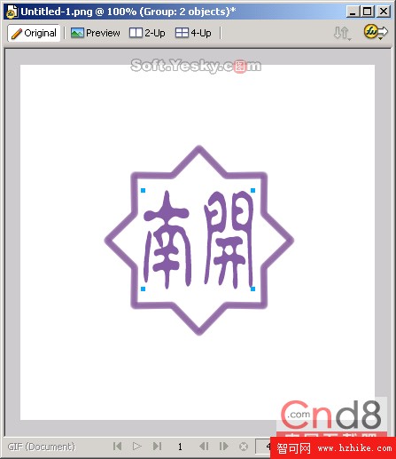 (8)文本現在已經不存在了,原來的文本現在變成兩個路徑的組合。由於我們只需要改動“南”字,所以需要將組合取消。選中上面的組合,右擊鼠標在彈出的快捷菜單中選擇“Ungroup”即可取消組合,得到圖8所示的圖像。