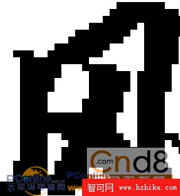 9、返回到剛才編輯的像素文字效果的編輯窗口, 打開層面板,按下“Ctrl”鍵,然後單擊“位圖層”,即可得到轉化為位圖對象的文字的選區,具體操作參看如下圖。