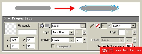 1. 建立新文件,用圓角矩形工具拖出一個矩形框,使用次選工具調節兩端的節點,如圖: