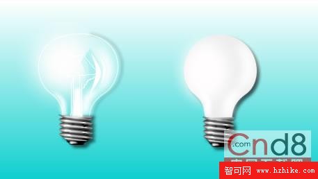 下面就是Fireworks MX 做出的仿真燈泡,左邊是透明的燈泡,右邊是磨砂燈泡,效果很逼真吧!