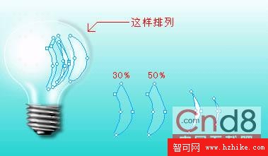 7. 將上面所繪制的圖形擺置如下圖,添加陰影效果,白熾燈泡即可大功告成。