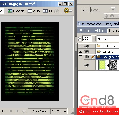 把矢量圖形拉到點陣圖下層,兩者組成遮罩。再將圖片背景色調成深色就可以看效果了。