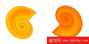 再來個粗細不均的圖形,我們以螺旋為范例,可以看出等高漸變填充的漸變相當平滑,它可以根據周邊的距離來進行漸變色計算,首先滿足的是最外層色彩,當漸變距離超過矢量物件本身的輪廓間距時,越靠近中心的顏色就越早被犧牲掉。