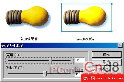 啟用該特效時會彈出一個設置窗口。通過拖動 “亮度”或“對比度”中的滑塊,可以增強或減弱圖形色彩的亮度和對比度。如圖14。