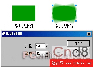 數量——設置對象產生放射狀的模糊程度。數值變化從1至100,數值越高,對象的放射狀模糊范圍也就越大;