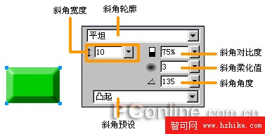 斜角柔化值——設置斜角的清晰度。數值變化從0至10,數值越大,斜角的柔化程度也就越高