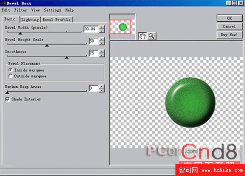 在Basic(基本)選項卡中,通過對Bevel Width、Beval Height Scale、Smoothmess這三個滑塊的設置,可以對圖像斜角的寬度、刻度及平滑度進行調整。在Bevel Placenent欄中,可以設定對象是內斜角還是外斜角。在Darken Deep Areas中,可以對圖像陰影的深度進行調整;