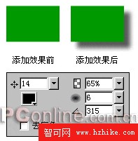 該特效和“內側陰影”特效在效果原理上正好相反。“投影”特效是在圖形對象外圍形成一定角度的陰影效果。通過該特效的設置窗口,可以更好地控制圖像陰影的范圍、角度及對比度等等。如圖26。
