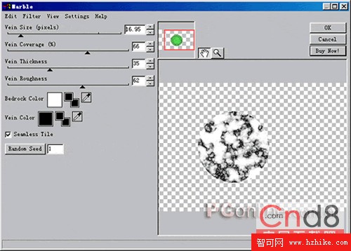 點擊“Randon Seed”按鈕時,將在9999個備選的大理石紋理填充中隨機抽取一個效果。