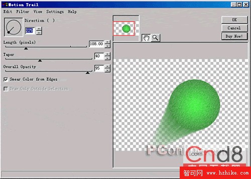 >“Motion Trail”這是一款能使圖形對象產生流星慧尾般運動效果的濾鏡,因此這個濾鏡又被稱為“運動軌跡”。其設置窗口如圖29。
