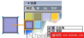 由此我們可以得出,樣式就是使用一些特效設計出來後,被保存起來的“組合特效”。只不過使用樣式將會更簡便、更直觀而已。因此我們也可以將一些使用了各種特效的圖形對象以樣式的形式保存到“樣式”面板中,形成一個自定義的樣式。使用自定義樣式的好處在於,當要為其它的圖形對象添加相同的特效時,可以直接點擊該自定義樣式即可。即使日後有其它的圖形對象需要添加相同的特效時,也不必在效果菜單中重新為其逐項添加所需的特效。因為,自定義樣式一旦被添加到“樣式”面板中後,除非你手動將其刪除,否則它就會一直被保留在那裡。