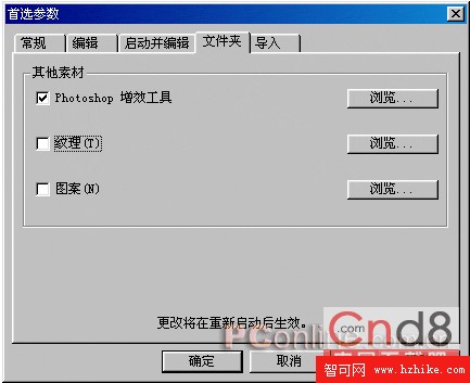 在該窗口的“文件夾”選項卡中勾選“Photoshop增效工具”後,點擊右邊的“浏覽”按鈕。然後在路徑選擇框中選擇Photoshop濾鏡的所在目錄。如圖41。