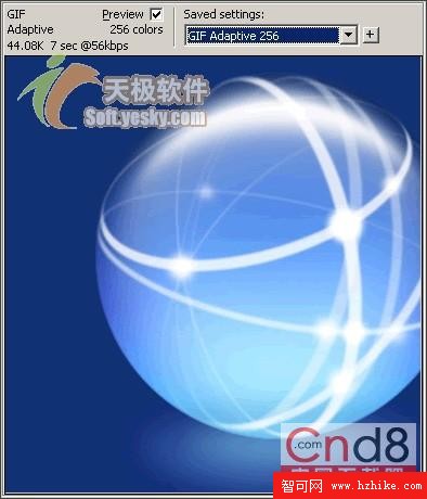 單擊“Exit”按鈕後系統將顯示優化了的導出預覽窗口,其中的優化參數均為系統推薦選用的參數。大家就可以按照網頁圖像的優化辦法來導出圖像了。
