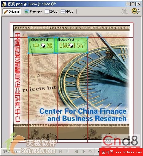 * 優化圖像:完整的圖像只能使用一種文件格式,應用一種優化方式,而對於作為切片的各幅小圖片我們就可以分別對其優化,並根據各幅切片的情況還可以存為不同的文件格式。這樣既能夠保證圖片質量,有能夠使得圖片變小。