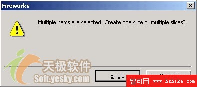 要使切片與對象區域緊密匹配,可以和熱點一樣先選中要制作成為切片的對象,然後點擊“Edit”菜單,選擇“Insert”->“Slice”;如果選擇了多個對象,則會出現一個如圖3所示的對話框,選擇“Multiple”按鈕,可以創建多個切片,如圖4所示。