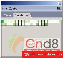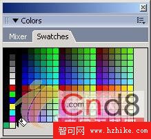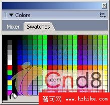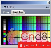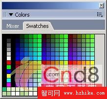 選擇色彩面板上的Swatches選項欄,這時打開色彩樣本面板,如圖15所示。在色彩樣本面板中我們就可以對Fireworks MX 2004中的色彩進行管理了。