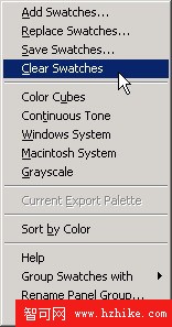 ,在彈出菜單中選擇“Clear Swatches”(清除樣本),如圖19所示,我們可以快速清除所有的色彩樣本。